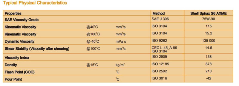 Thông số kỹ thuật: Shell Spirax S6 AXME 75W90